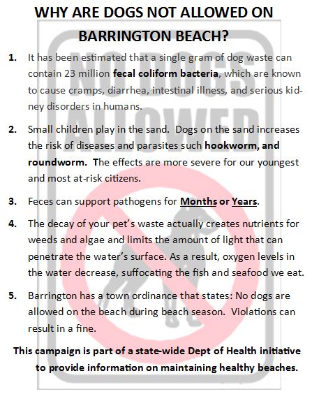 Dogs are not allowed on the sand during the beach season (please see above).To learn more as to why dogs are not allowed on the sand, please click here.